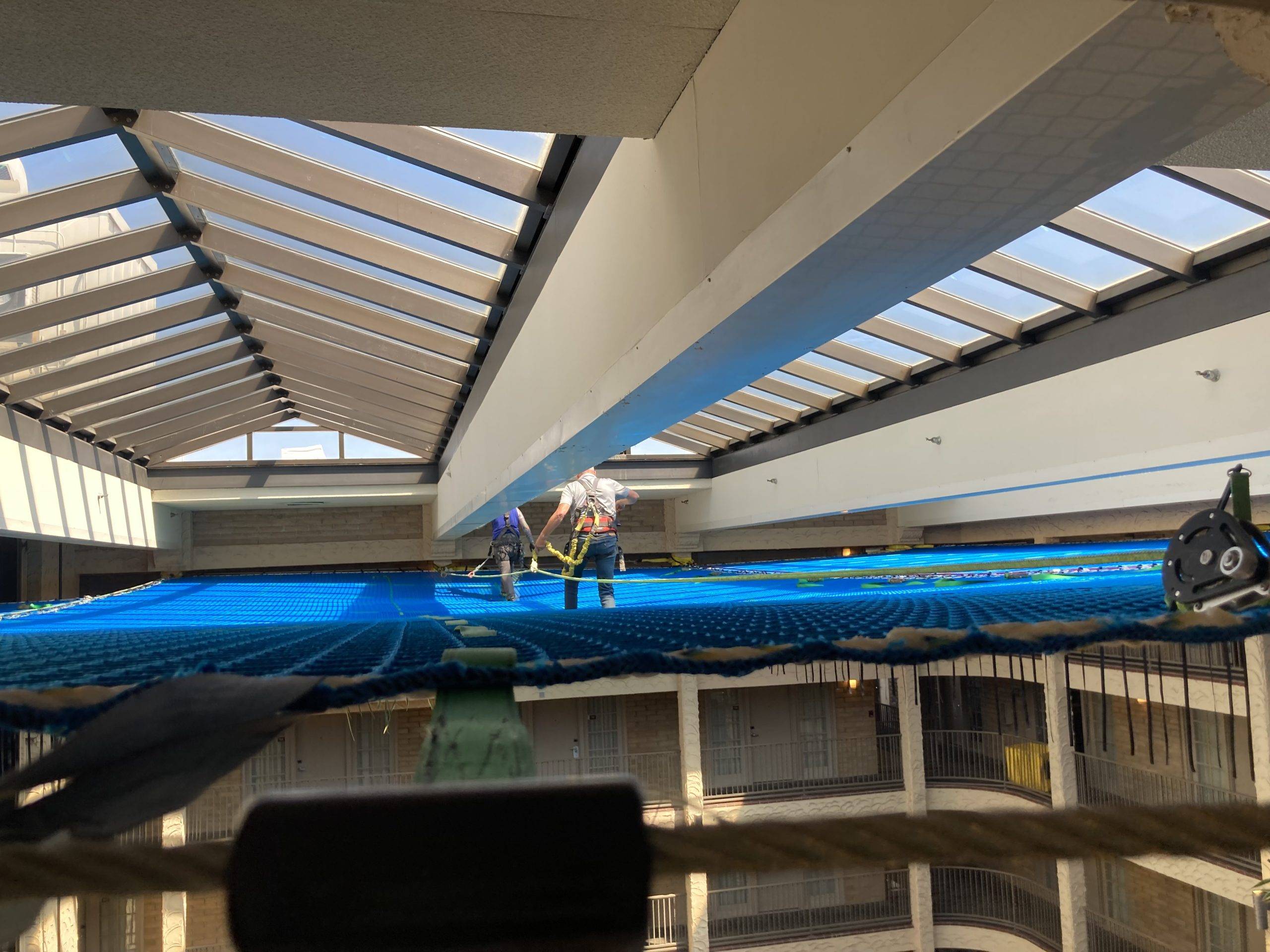 For areas where lifts and scaffolding may be difficult to deploy, or downtime for the customer is not an option, a suspended GOLDACCESS™ netting platform can provide the access you need more quickly and cost-effectively than other conventional access methods.
